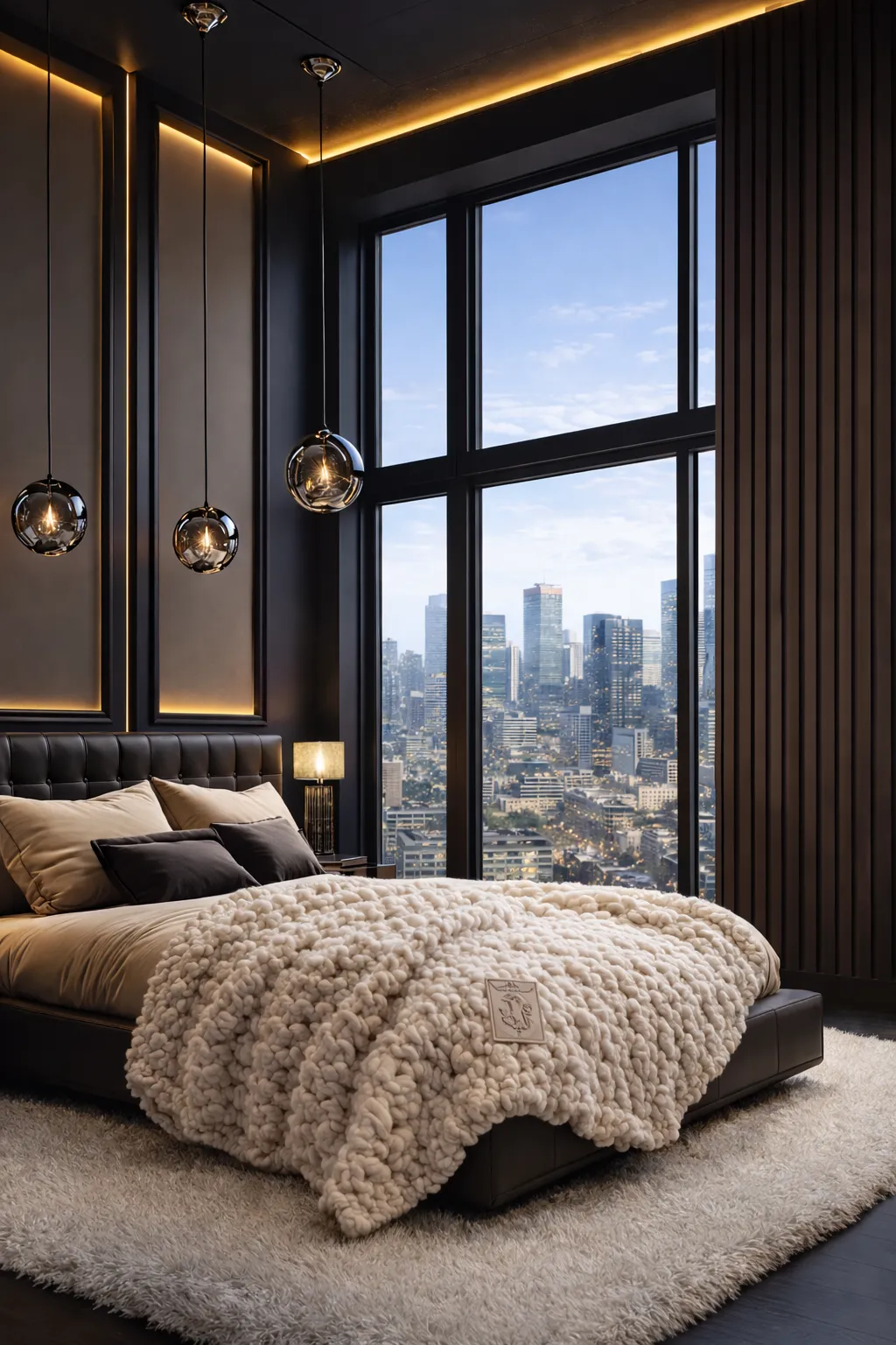Integrated smart-home technology is woven seamlessly into the experience. Climate, lighting, and sound are all intelligently automated, responding intuitively to mood and time of day. Soundproofed, floor-to-ceiling windows frame expansive city vistas while preserving complete privacy, allowing the room to function as a serene retreat above the movement below.